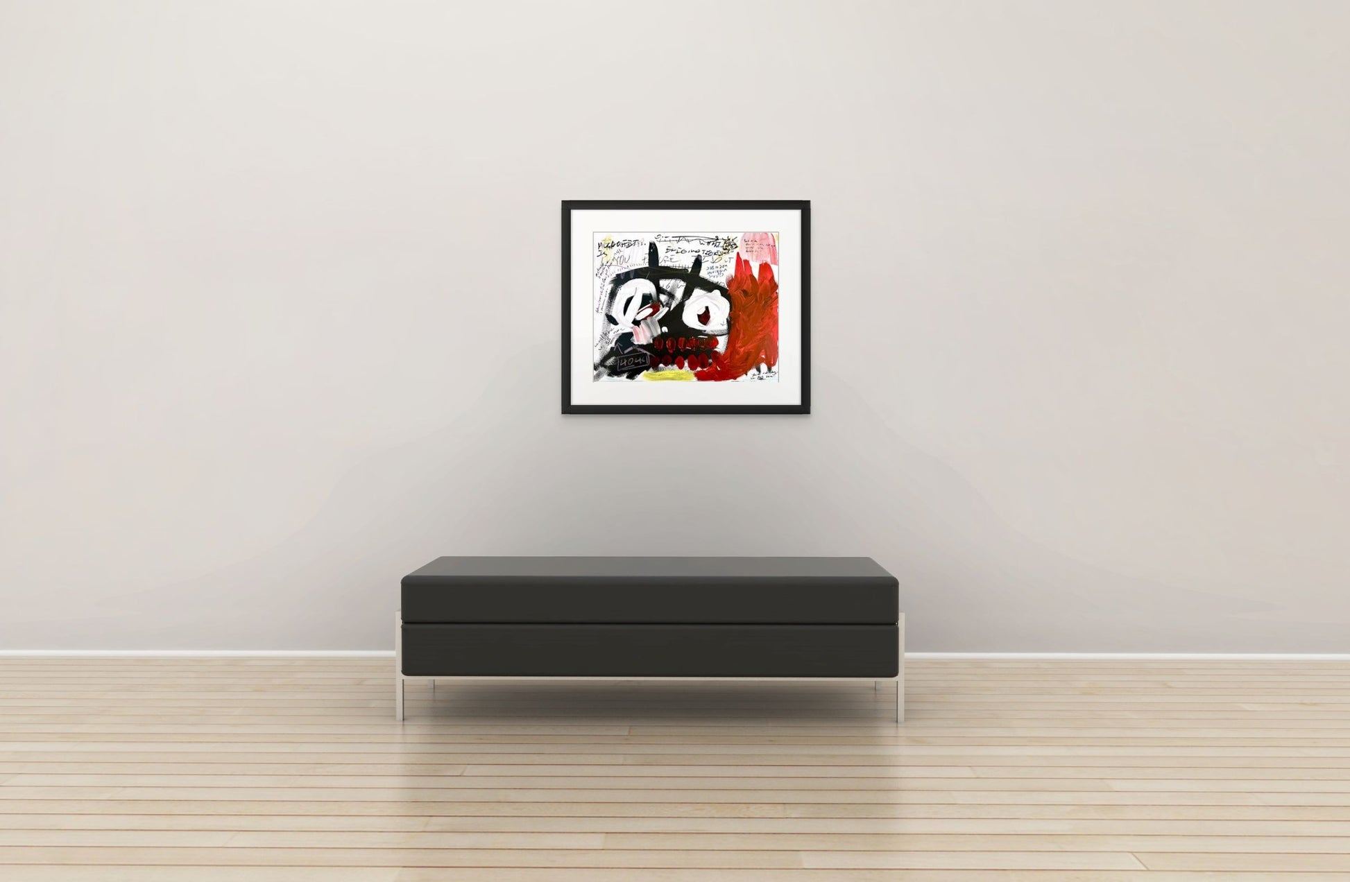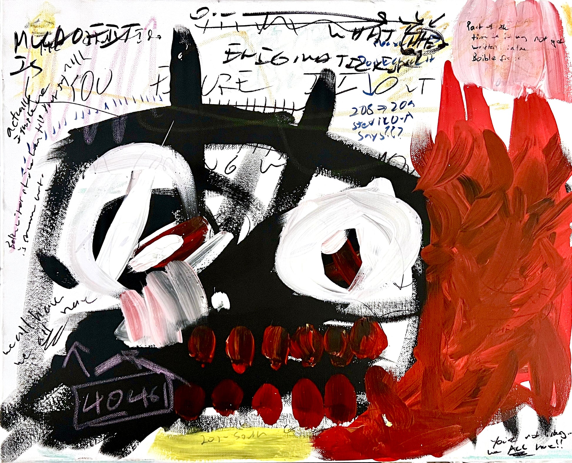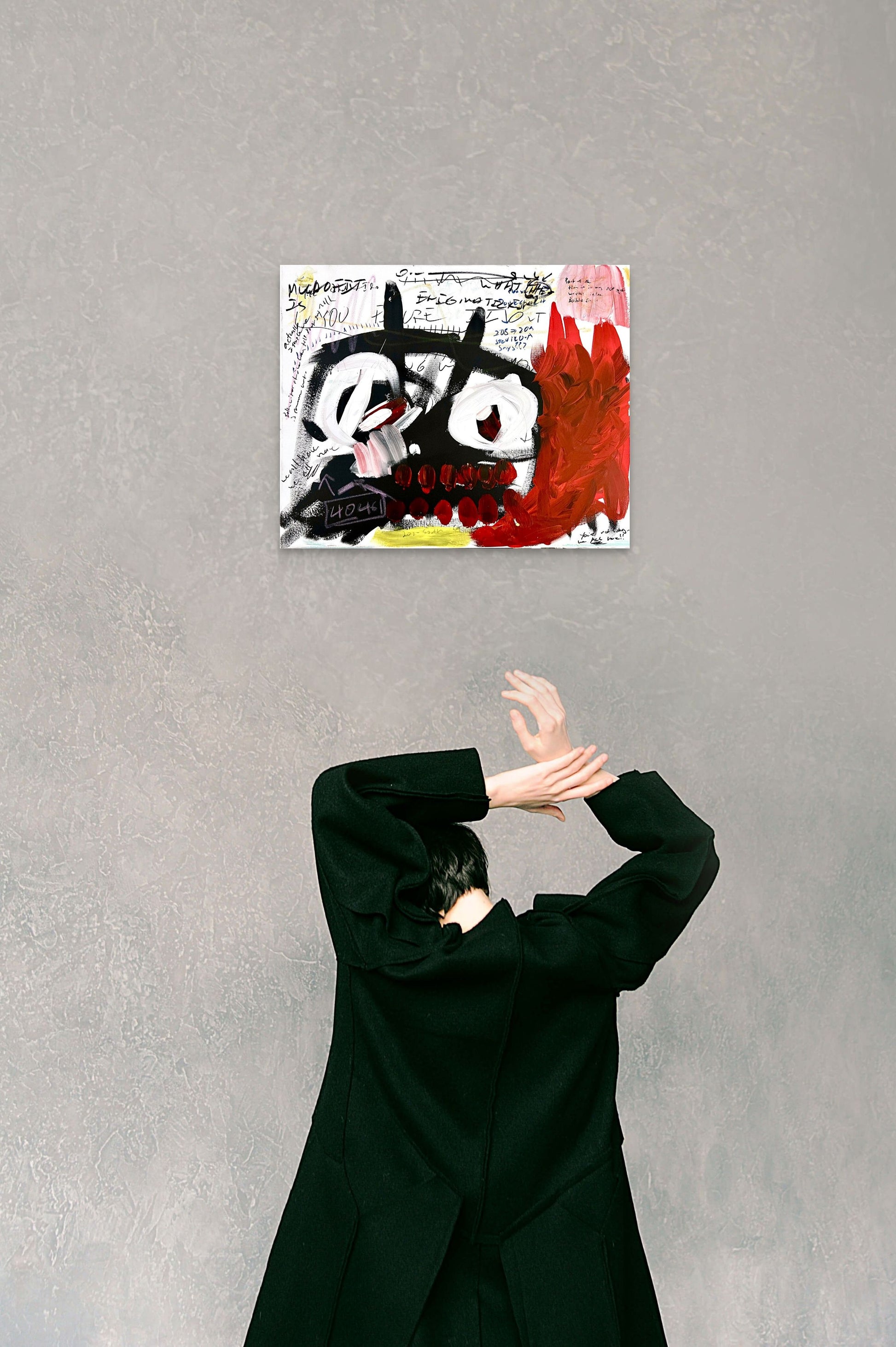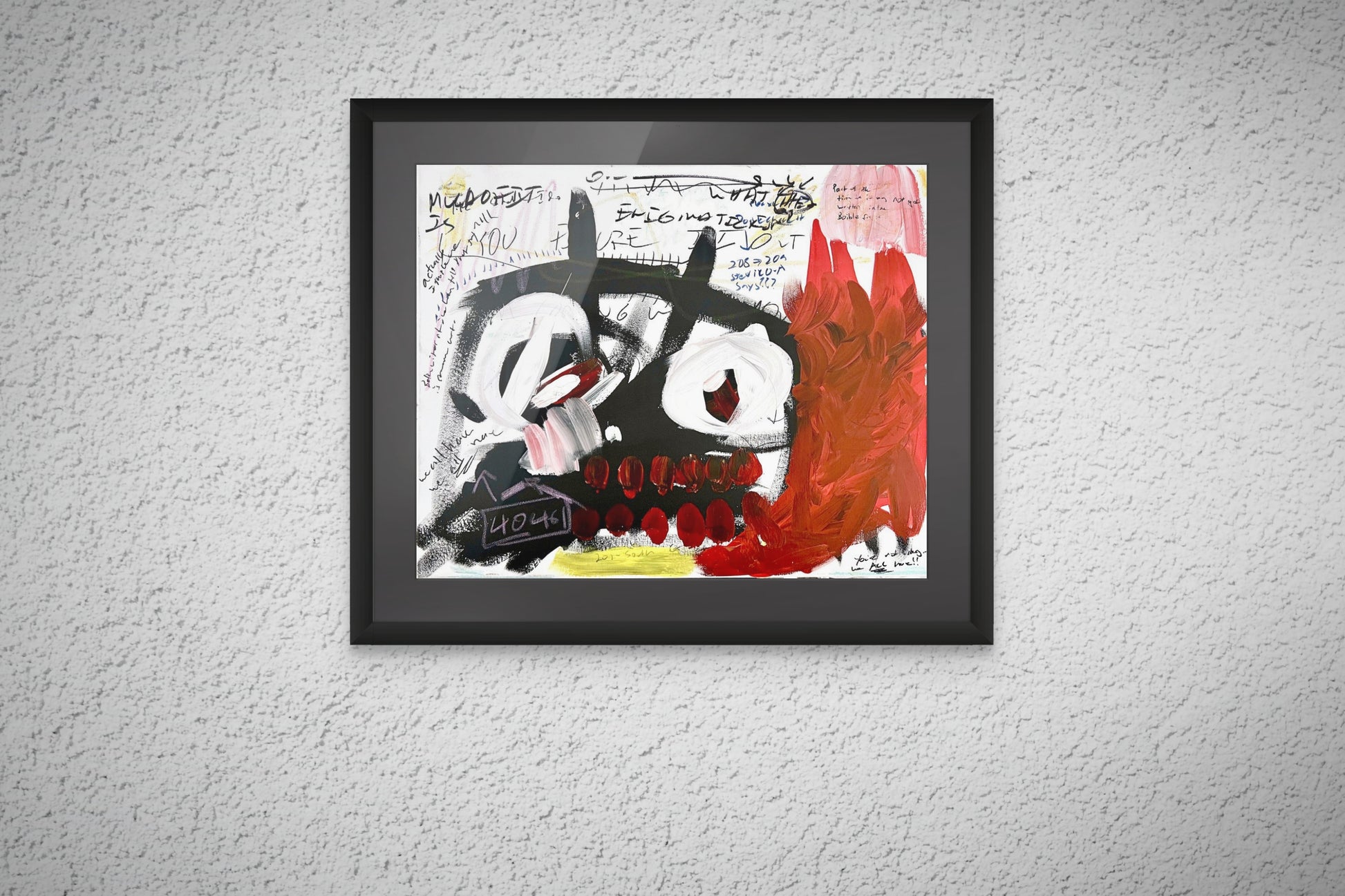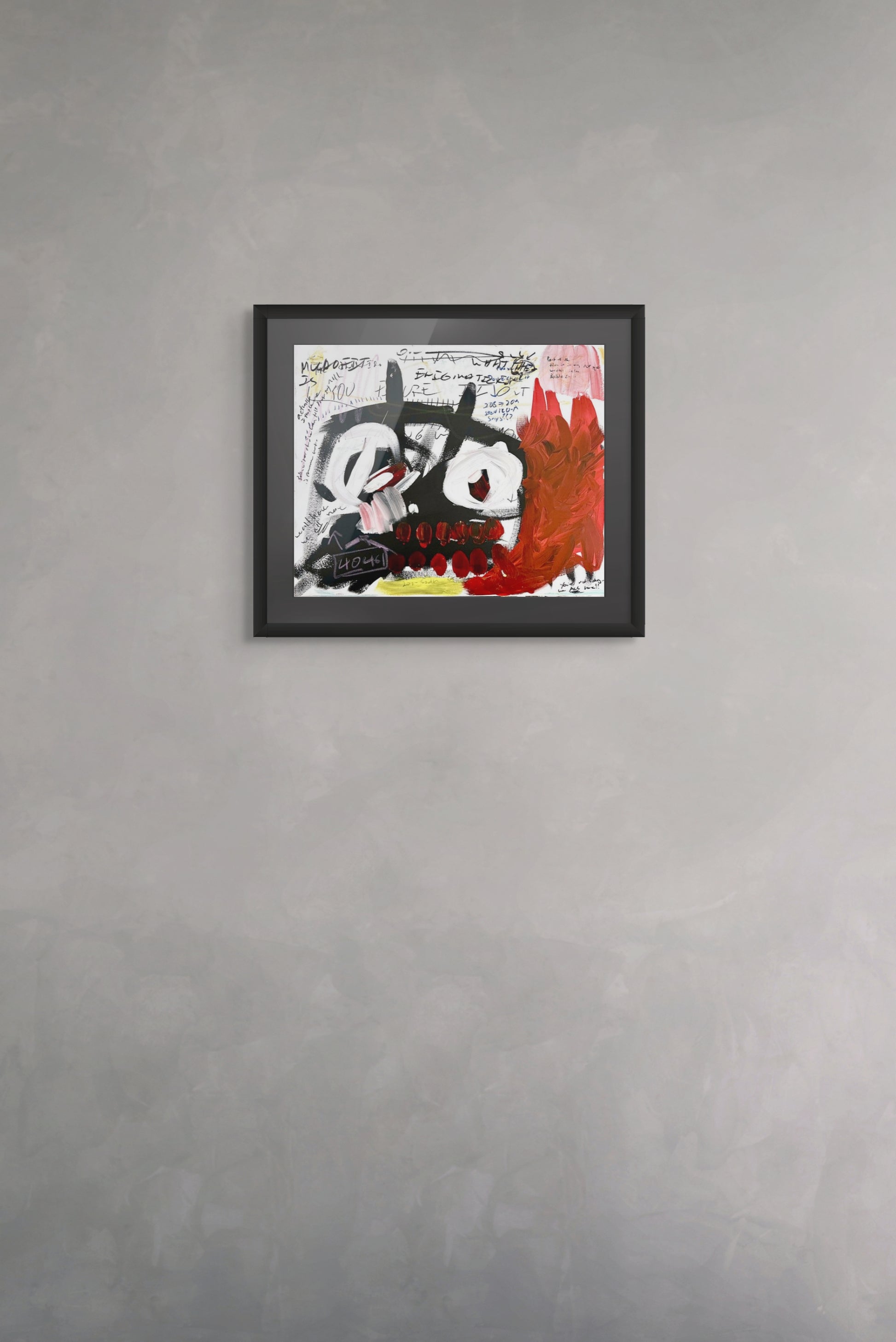 “Human Engineering (to Breathe Fire)” is a hand-forged meditation on volatility and transformation. Executed entirely by hand, the work reveals a layered interplay of oil pastel, acrylic, and marker — each medium asserting its own texture while yielding to the next. The stratified surface carries the record of a process both deliberate and instinctive, where successive gestures create a palimpsest of thought and emotion.