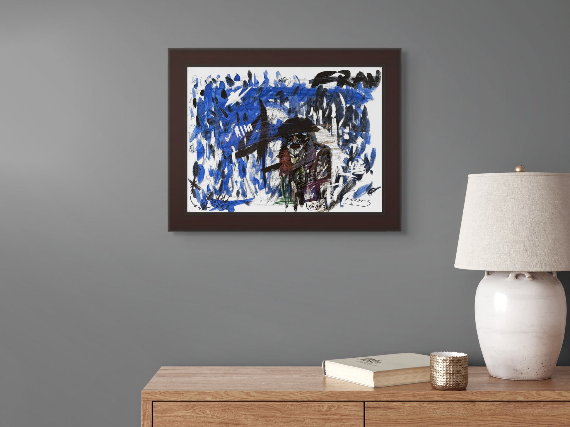The palette emphasizes mood over realism: deep tones convey weight, while lighter washes break through like fleeting moments of calm. Rather than a literal scene, the work becomes an exploration of solitude, resilience, and the fragile act of finding cover within the storm.