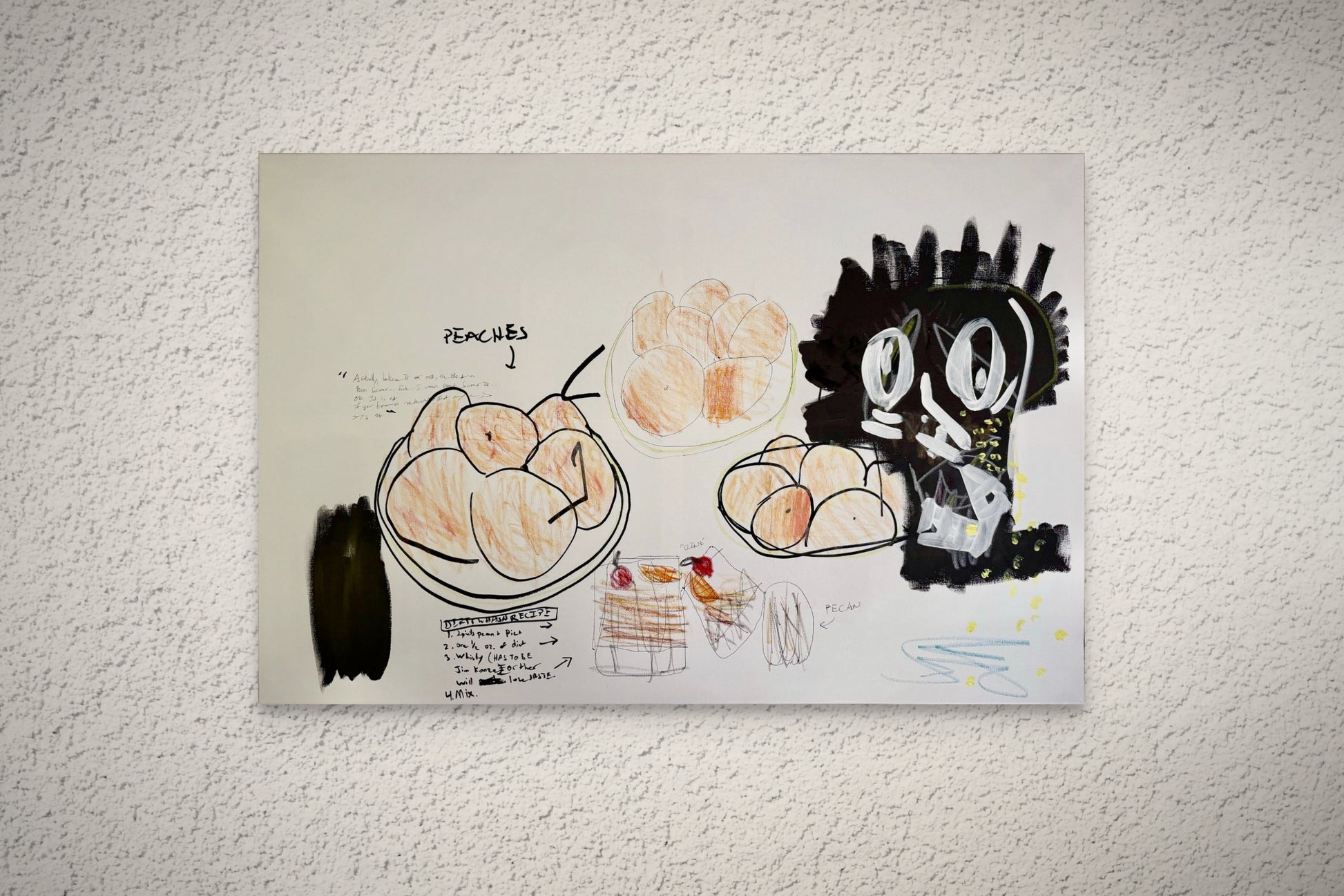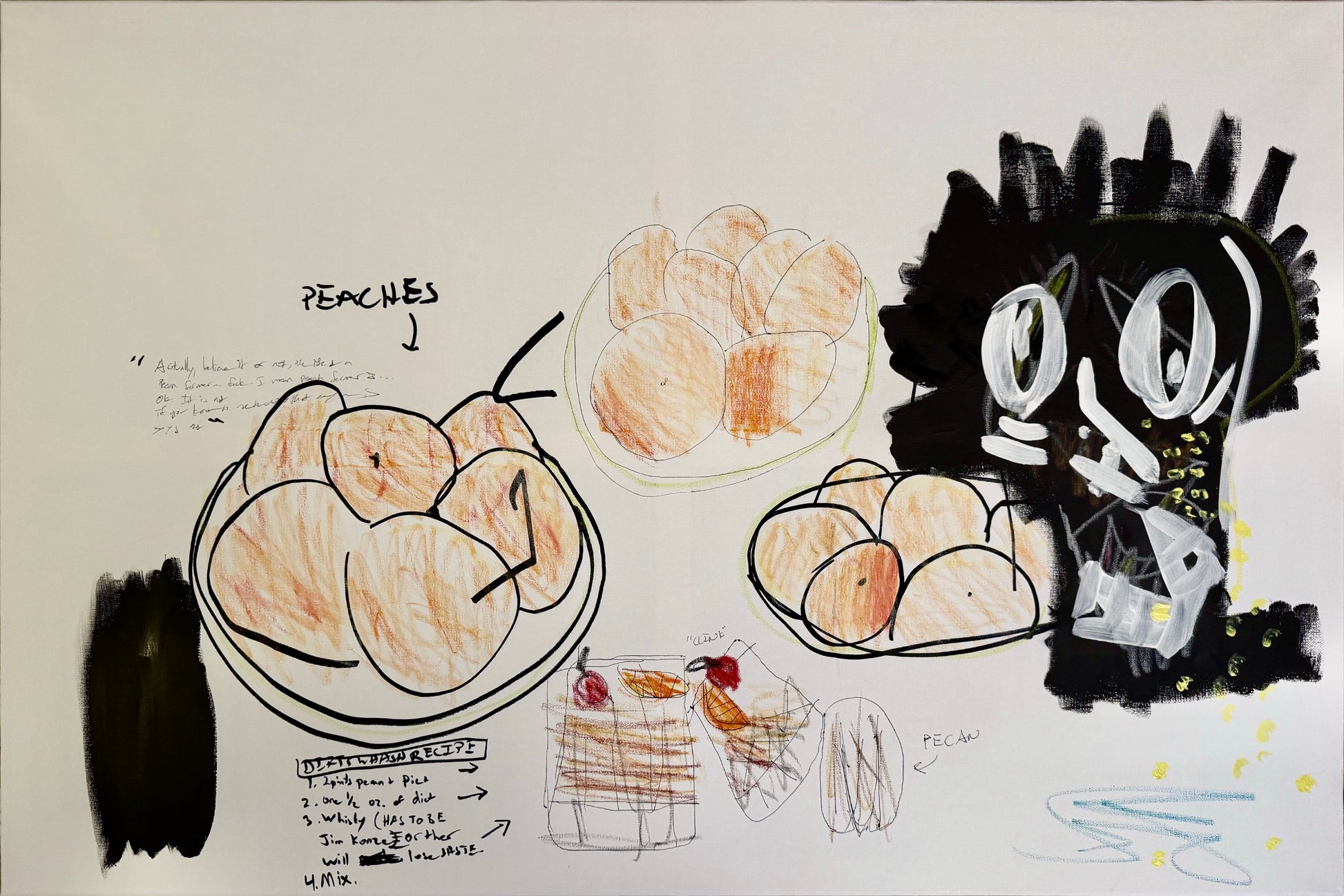 Peach Farmer reflects the unseen labor that gives rise to beauty. Inspired by the quiet resilience of southern life, it captures a tension between abundance and anonymity – the radiant fruit standing in contrast to the figures who tend it yet remain in the background. Through layered texture and gesture, the piece becomes a meditation on work, humility, and the quiet grace found in devotion without recognition.